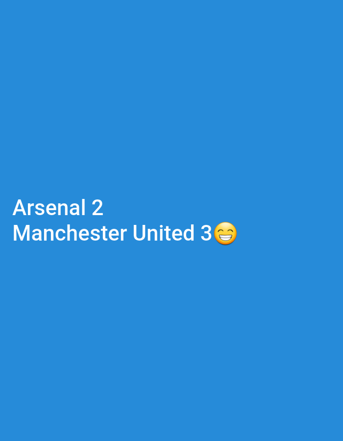 text "Arsenal 2 Manchester United 3" in white against a solid blue background