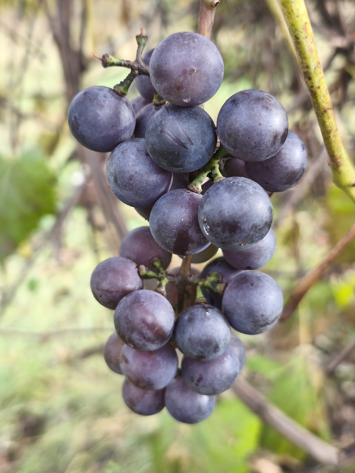 - "A vertical close-up photograph displays a dense cluster of ripe dark purple grapes, suspended from a vine in an outdoor setting in Парэчча, Belarus" by FM-x32VB2, licensed under CC BY 4.0