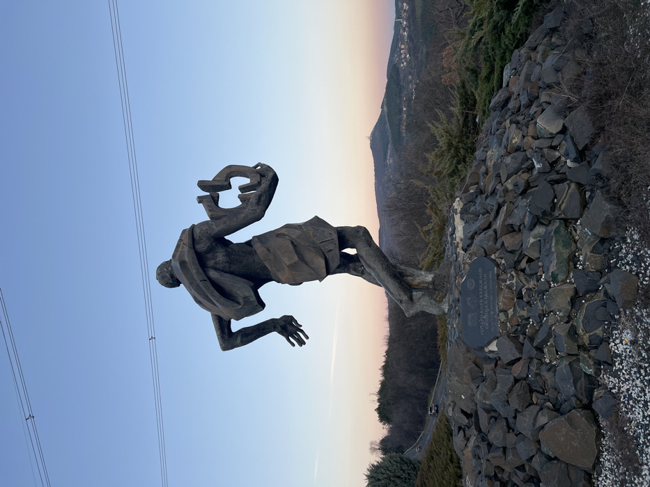 - "A bronze sculpture of a male figure is depicted at dusk, situated on a rock-strewn base overlooking a hilly landscape in Nevestino, Bulgaria" by FM-yFnm82, licensed under CC BY 4.0