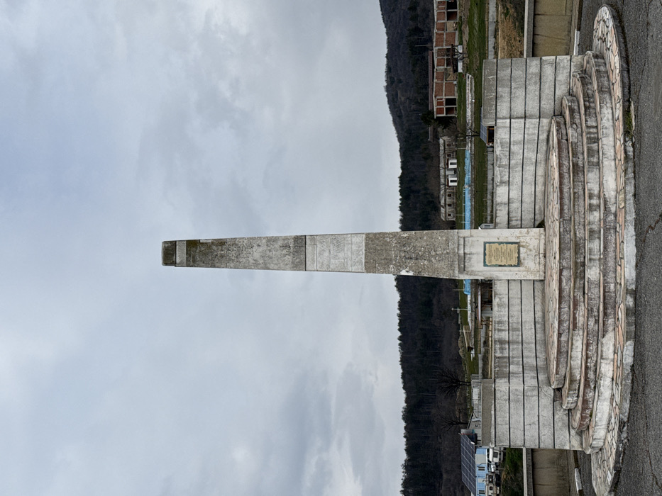 - "An exterior image captures a weathered, light-grey concrete or stone obelisk monument centrally positioned in Panicherevo, Bulgaria, under an overcast sky" by FM-zUnvm1, licensed under CC BY 4.0