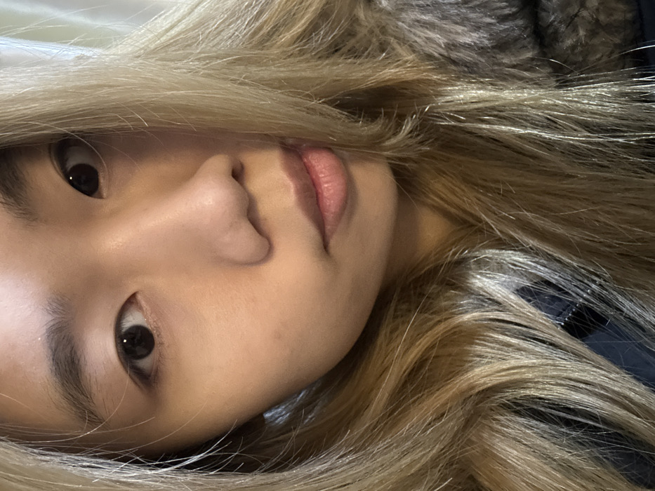 - "A close-up, chest-level portrait features an East Asian female, likely a young adult, with long, light blonde hair parted to the left, framing her face and cascading over her shoulders" by FM-Pjg2K3, licensed under CC BY 4.0