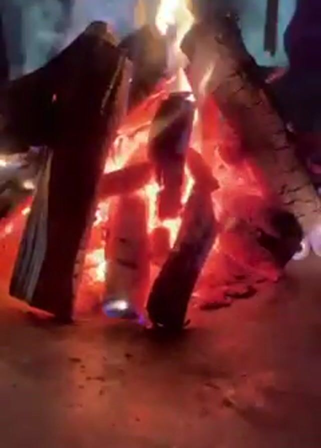 A burning campfire is shown up close