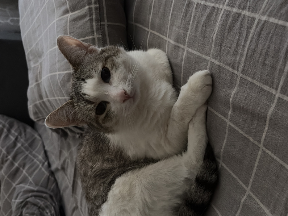 - "A domestic short-haired cat is observed resting on a bed" by FM-Ecg5G3, licensed under CC BY 4.0
