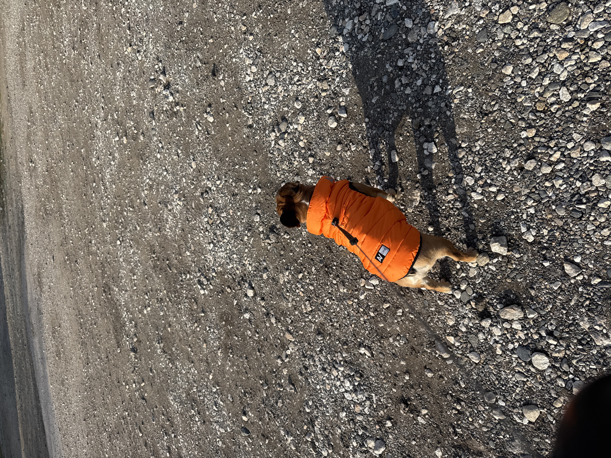 - "A brown, short-haired dog, possibly a bulldog or similar breed, is depicted from a slightly elevated rear perspective, standing on a gravel and dirt path under natural light in the city of Karlovo, Bulgaria" by FM-nMcW83, licensed under CC BY 4.0