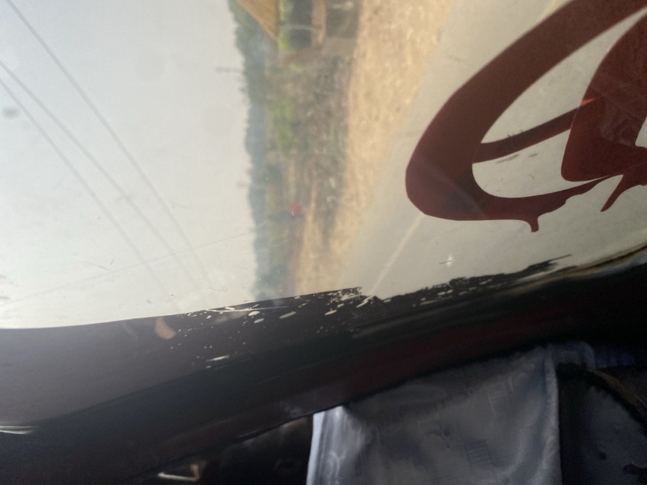 The image depicts a view from inside a vehicle looking out a window onto a roadside scene in Dadi Riba, Nigeria