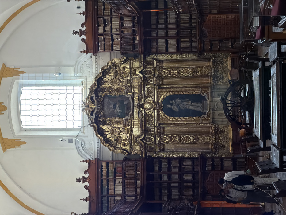 This image captures the interior of the Biblioteca Palafoxiana, located in Puebla, Mexico