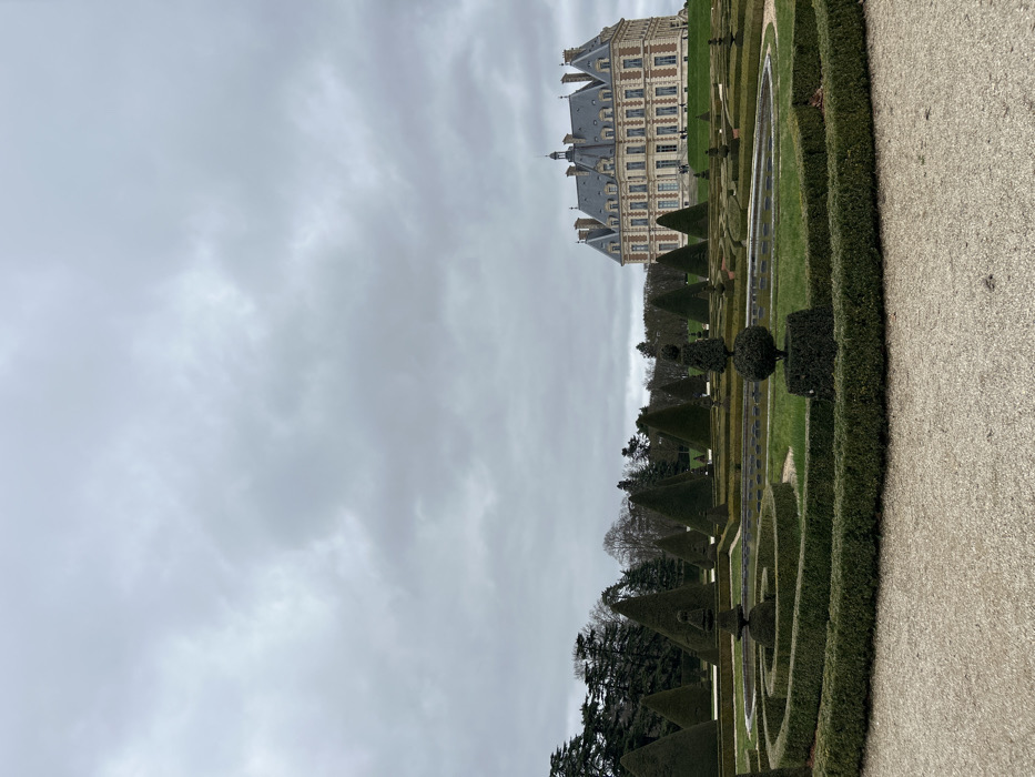 - "A grand chateau rises in the distance, viewed from its elaborate formal gardens" by FM-QoHjo1, licensed under CC BY 4.0
