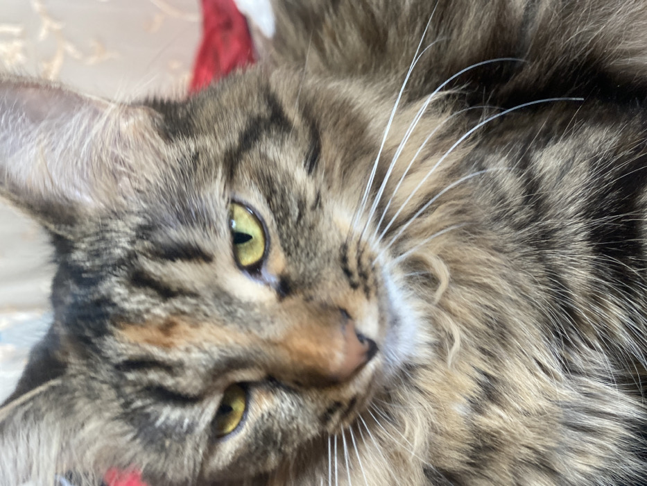 - "A long-haired cat, exhibiting a brown tabby pattern with darker stripes and a reddish-brown patch on its forehead, is depicted in a close-up, headshot portrait" by FM-Aryqt1, licensed under CC BY 4.0