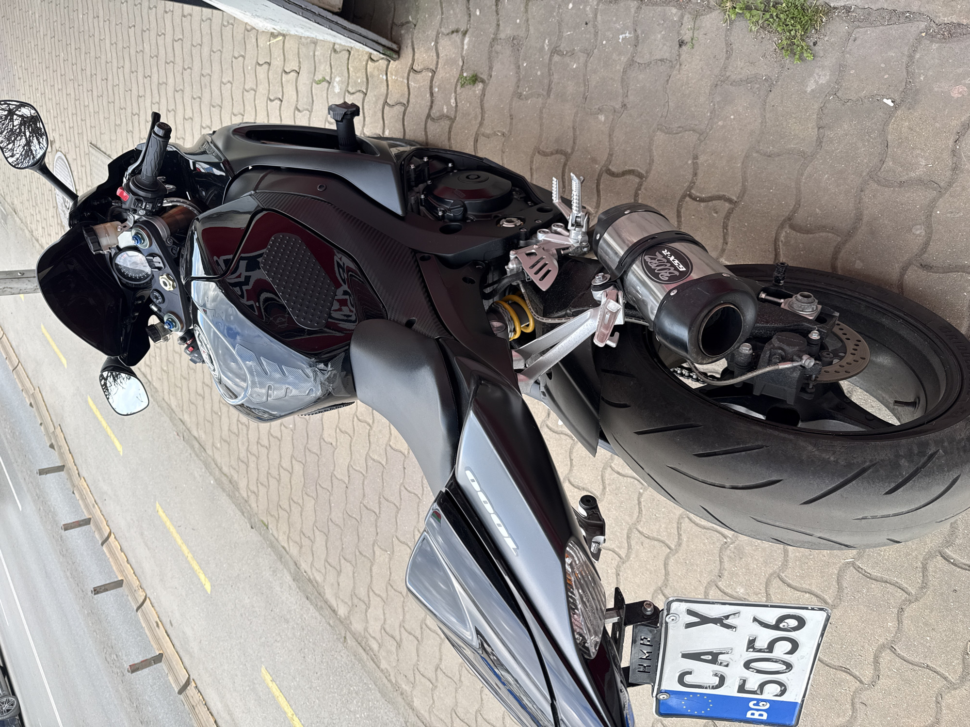 - "A black Suzuki GSX-R 1000 sport motorcycle is parked on a grey interlocking paver sidewalk in Sofia, Bulgaria" by FM-jMD1m1, licensed under CC BY 4.0