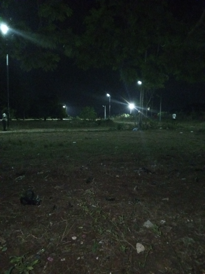 The image depicts an open, unpaved area at night in Ihiagwa, Nigeria
