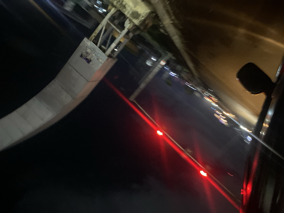 The image presents a nocturnal view in Ikate, Nigeria, from the interior of a vehicle