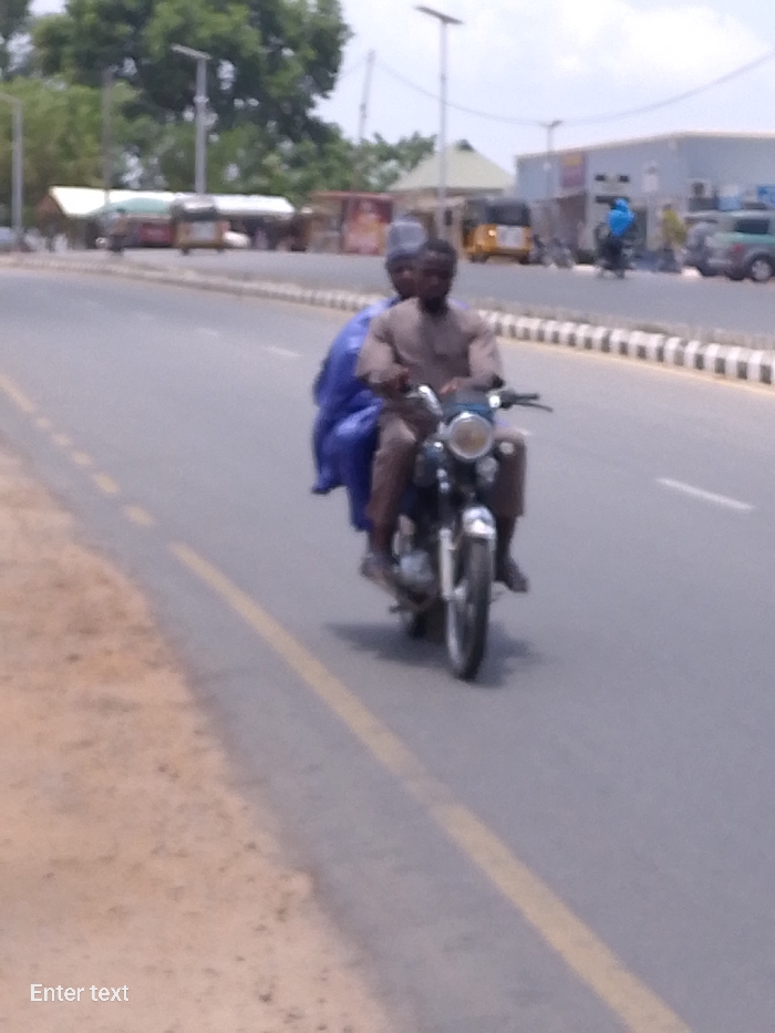 - "Two males are observed riding a dark-colored motorcycle down a paved road in Adankolo, Nigeria, under bright daylight conditions" by FM-8tI5r2, licensed under CC BY 4.0