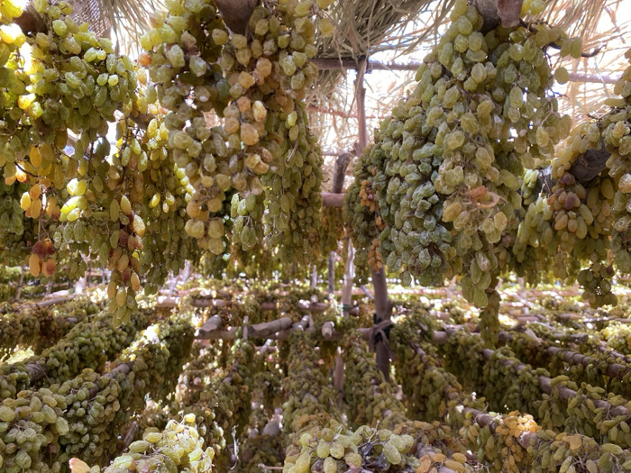 - "The image captures a detailed, upward-angled view inside an outdoor facility in Bazar-e Panjva'i, Afghanistan, dedicated to drying grapes" by FM-B5wmg2, licensed under CC BY 4.0
