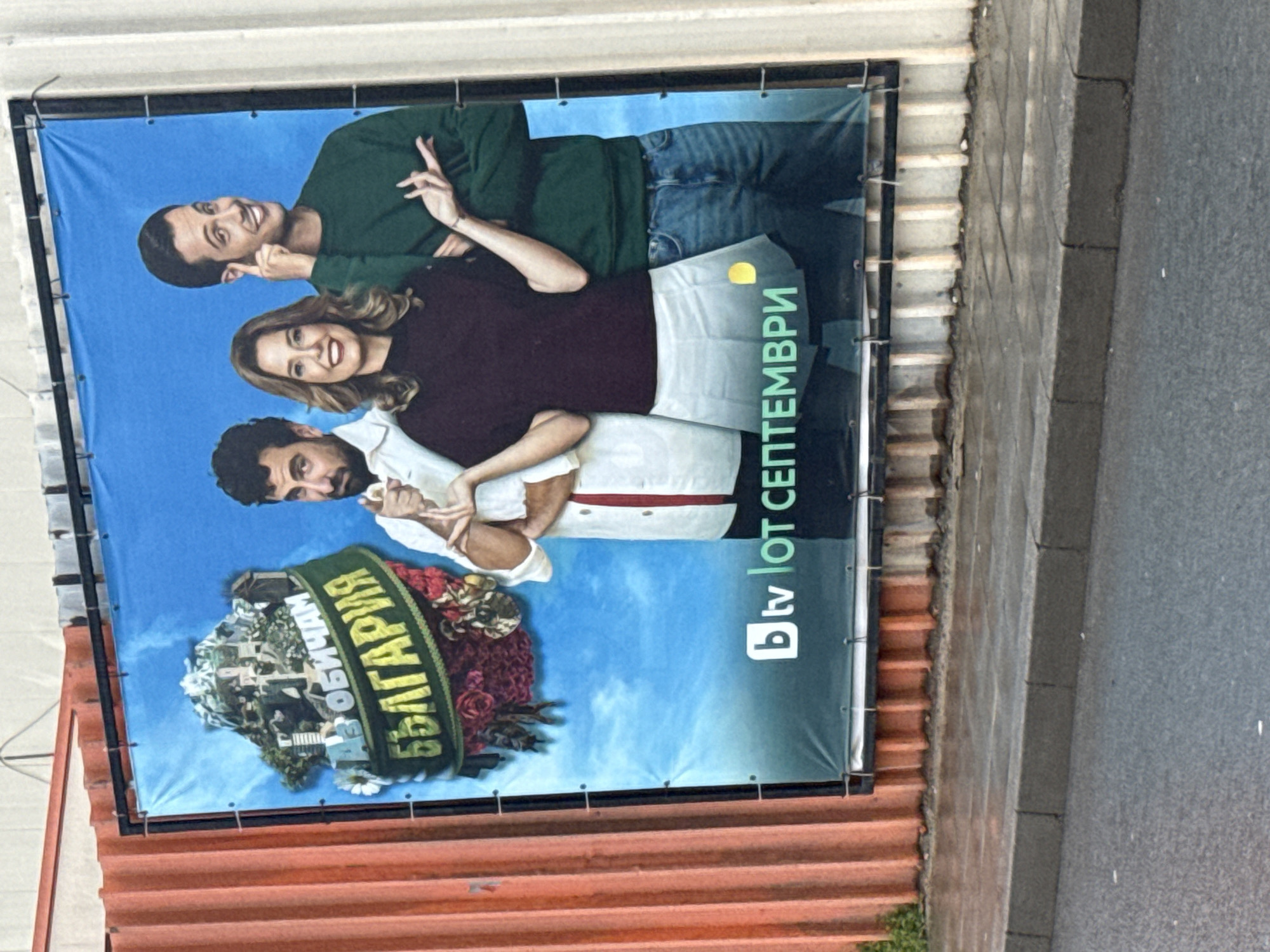 - "A large billboard, advertising a Bulgarian television program, is displayed outdoors in the city of Burgas, Bulgaria" by FM-OTqD53, licensed under CC BY 4.0