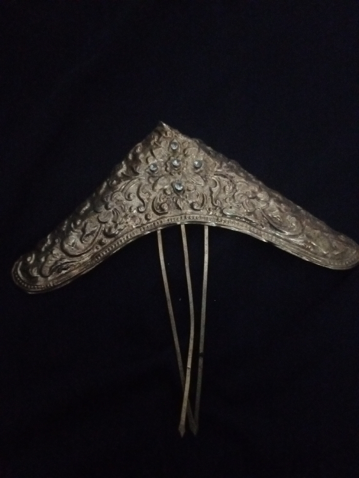 - "The image displays a single metallic headpiece or hair ornament positioned against a plain, dark background" by FM-CuvaI2, licensed under CC BY 4.0