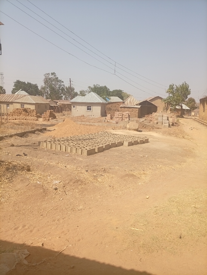 The image depicts an open, unpaved area in Barikin Gidar Kanat, Nigeria, under a clear, light blue sky