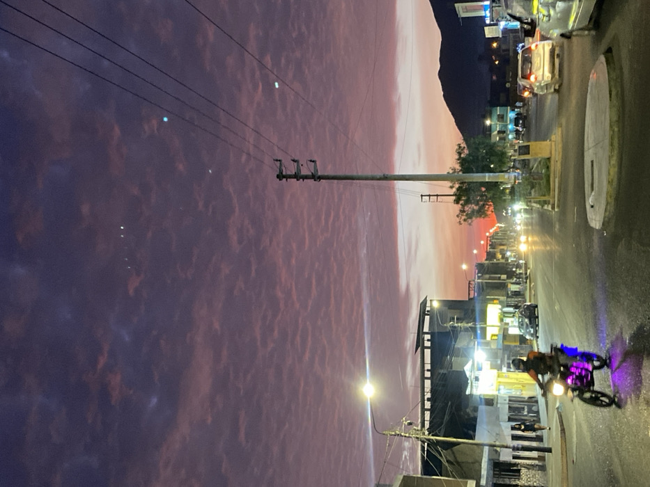 - "An urban street scene in Chimbote, Peru, is depicted at dusk or twilight, characterized by a vibrant reddish-purple altocumulus cloud formation filling the sky, transitioning to orange-red at the horizon line" by FM-E9OOq1, licensed under CC BY 4.0