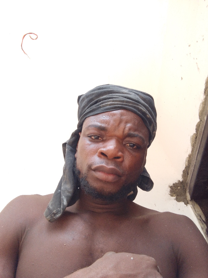 A close-up, front-facing portrait of a male subject with dark skin, situated in Alor, Nigeria