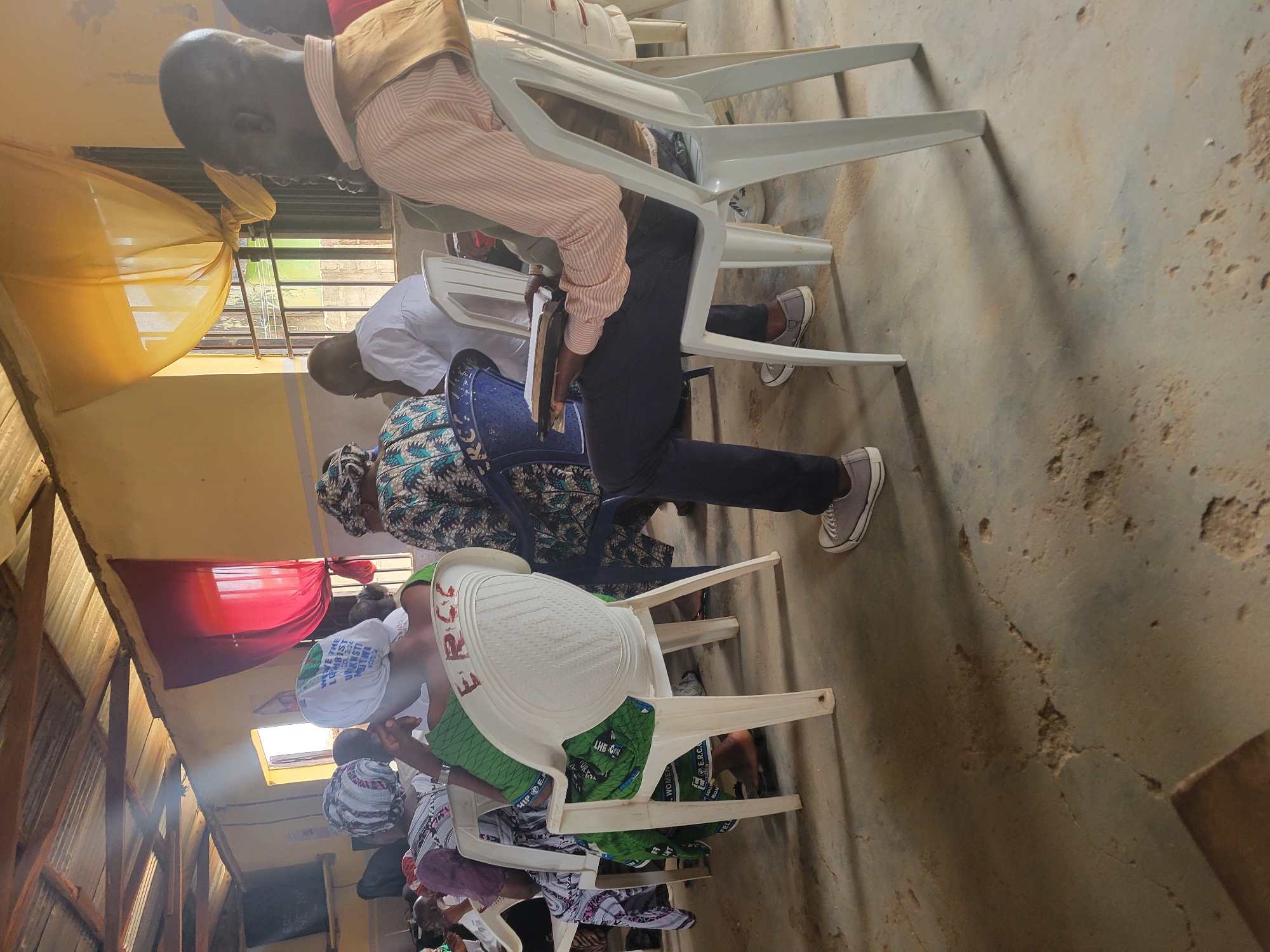 gathering of people inside a simple, possibly religious, building in Kwamba, Nigeria