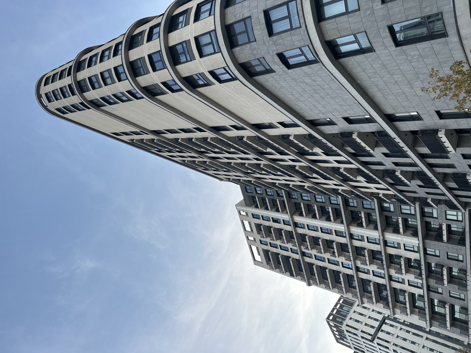 - "The image presents a low-angle view of three modern high-rise residential or commercial buildings under a light blue sky with sparse white clouds, located in Belgrade, Serbia" by FM-cVWYb2, licensed under CC BY 4.0