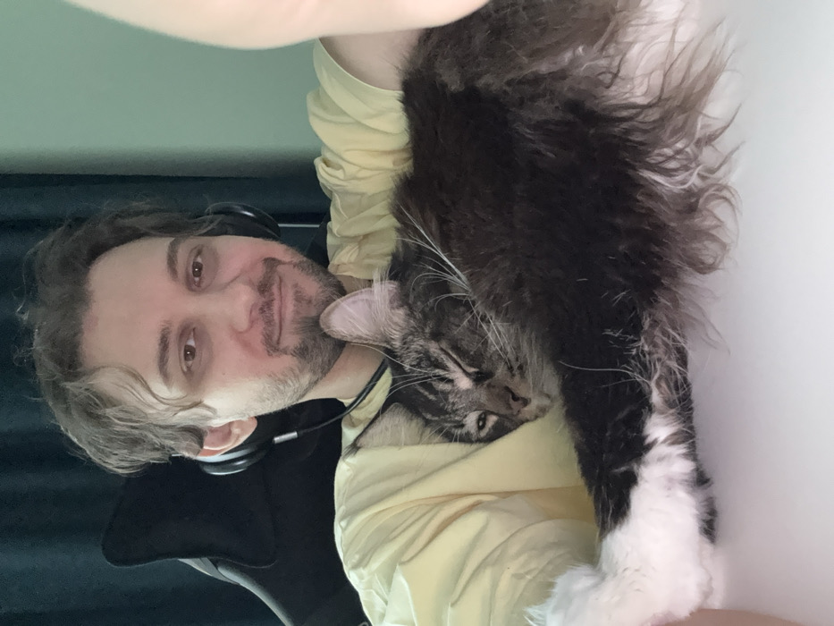 - "The image displays an indoor scene featuring an adult male and a domestic cat" by FM-dIIq52, licensed under CC BY 4.0