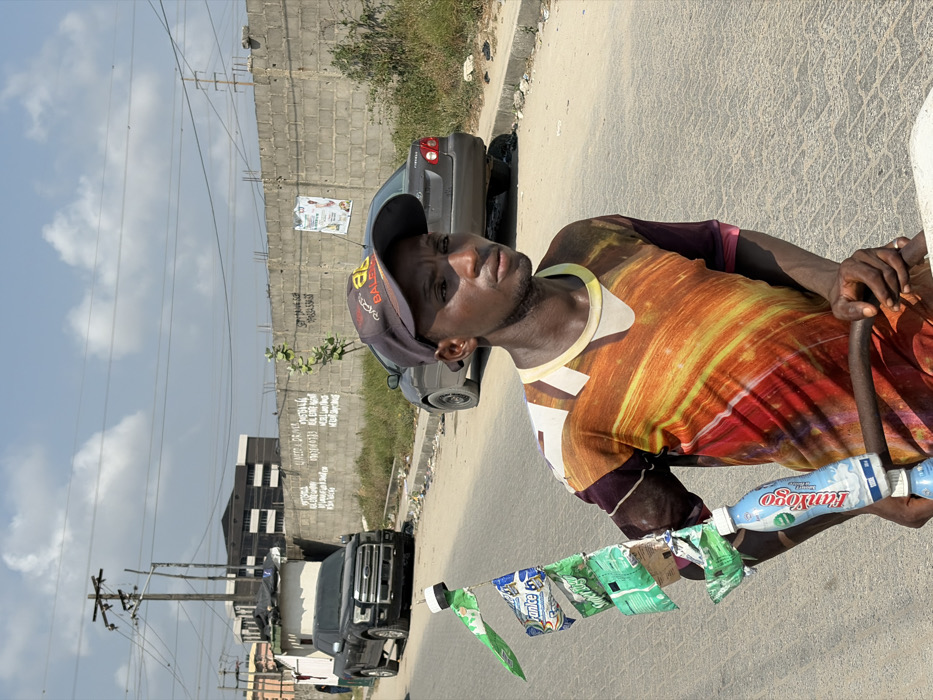 - "In Alaguntan, Nigeria, a young adult male is depicted in daylight, positioned on a paved road, presumably operating a bicycle from which he sells goods" by FM-rkm0j2, licensed under CC BY 4.0