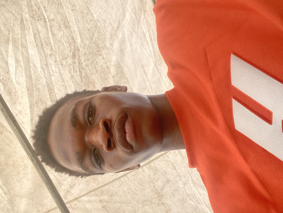 A person with dark skin and short, dark hair is centered in the frame