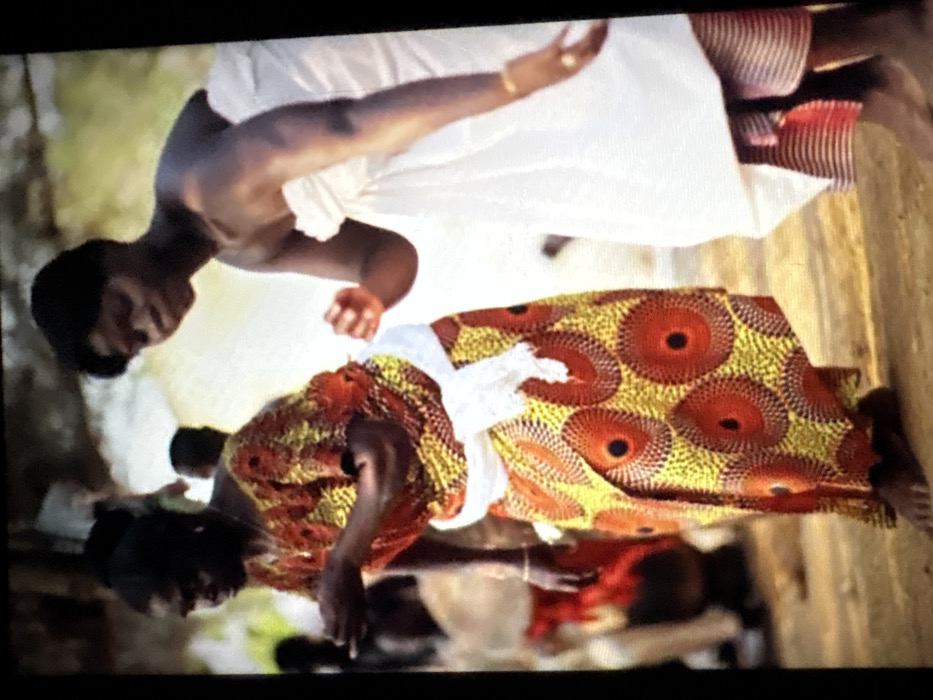 The image captures two women dancing outdoors in Jos, Nigeria