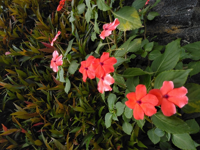 - "This image captures a close-up of vibrant red-orange flowers, identified as Impatiens, set against a backdrop of dense green foliage within an outdoor garden environment in Emmerich on the Rhine, Germany" by FM-f7oWW2, licensed under CC BY 4.0