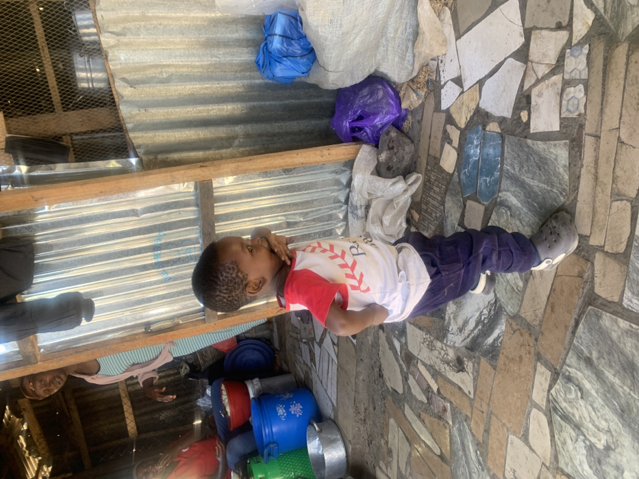 - "The image depicts an informal indoor/outdoor transition area in Jos, Nigeria, characterized by corrugated metal walls, exposed wooden structural beams, and a mosaic-style floor composed of irregular tiles and stone fragments" by FM-O5WCg2, licensed under CC BY 4.0