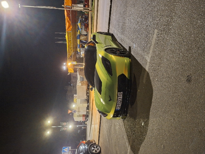 - "A neon green Chevrolet Corvette C7 sports car, featuring a black hood stripe and black multi-spoke wheels, is parked at night on a wet asphalt surface in Gabrovo, Bulgaria" by FM-bRbj42, licensed under CC BY 4.0