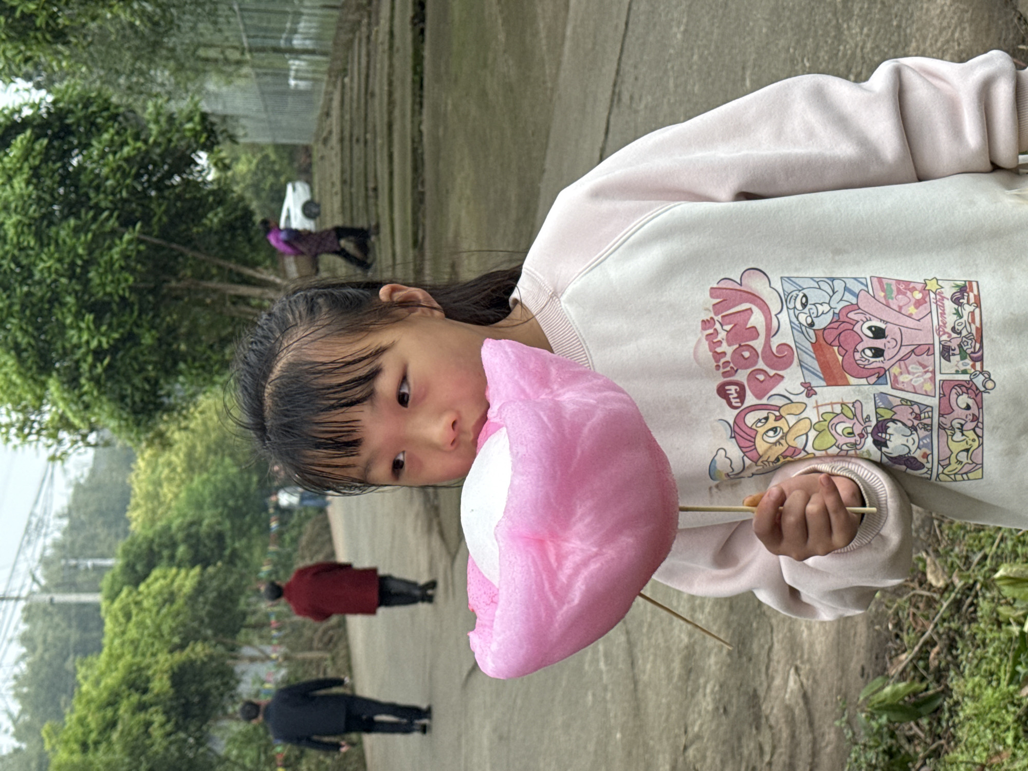 - "A young girl with black hair is eating a large piece of pink and white cotton candy in an outdoor setting in Xianfeng, China" by FM-uU6wU2, licensed under CC BY 4.0