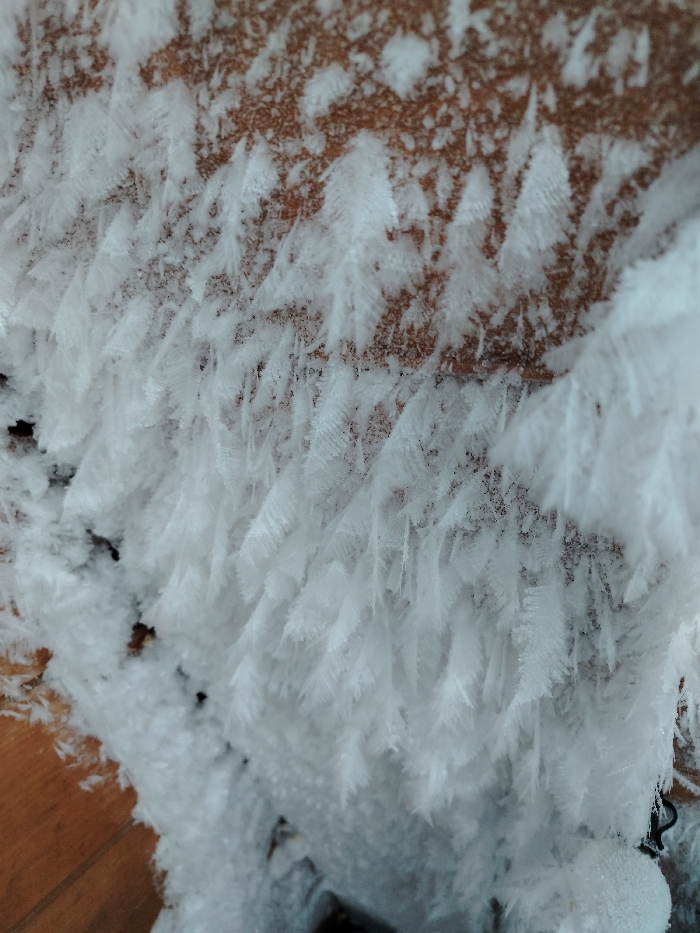 - "Frost covers a wooden surface, creating intricate, feathery patterns" by FM-NjBS72, licensed under CC BY 4.0