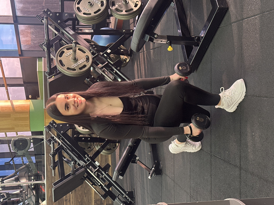 - "A female subject with long, dark hair is positioned centrally, performing a dumbbell lunge exercise in a gymnasium in Saint Petersburg, Russia" by FM-3Fotg1, licensed under CC BY 4.0