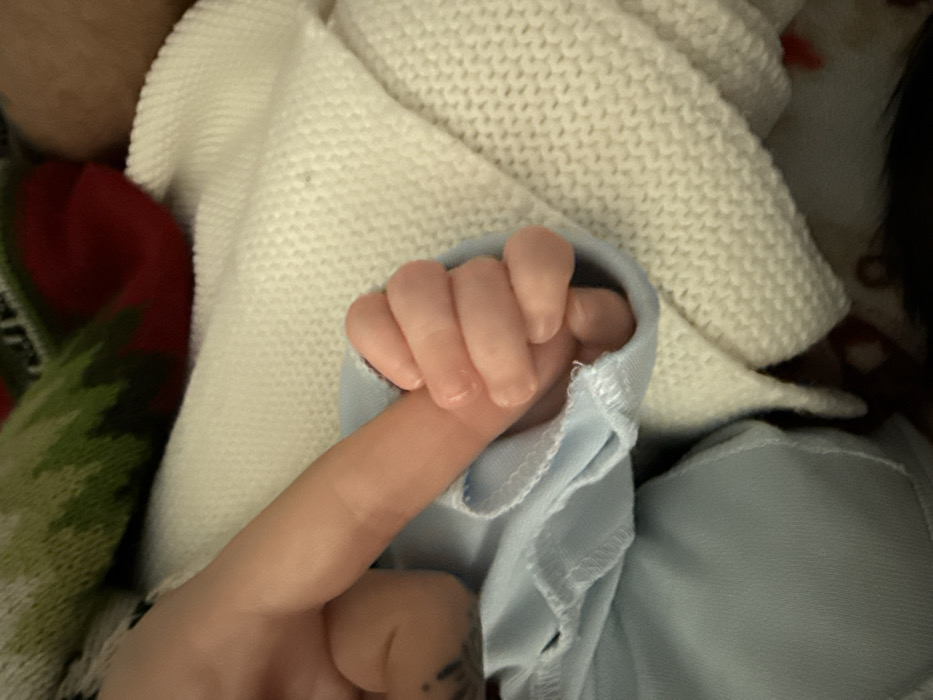 - "The image displays a close-up, downward-angled view of an infant's right hand grasping an adult's left index finger, set within an indoor environment in Chaikovsky, Russia" by FM-YWq3W2, licensed under CC BY 4.0