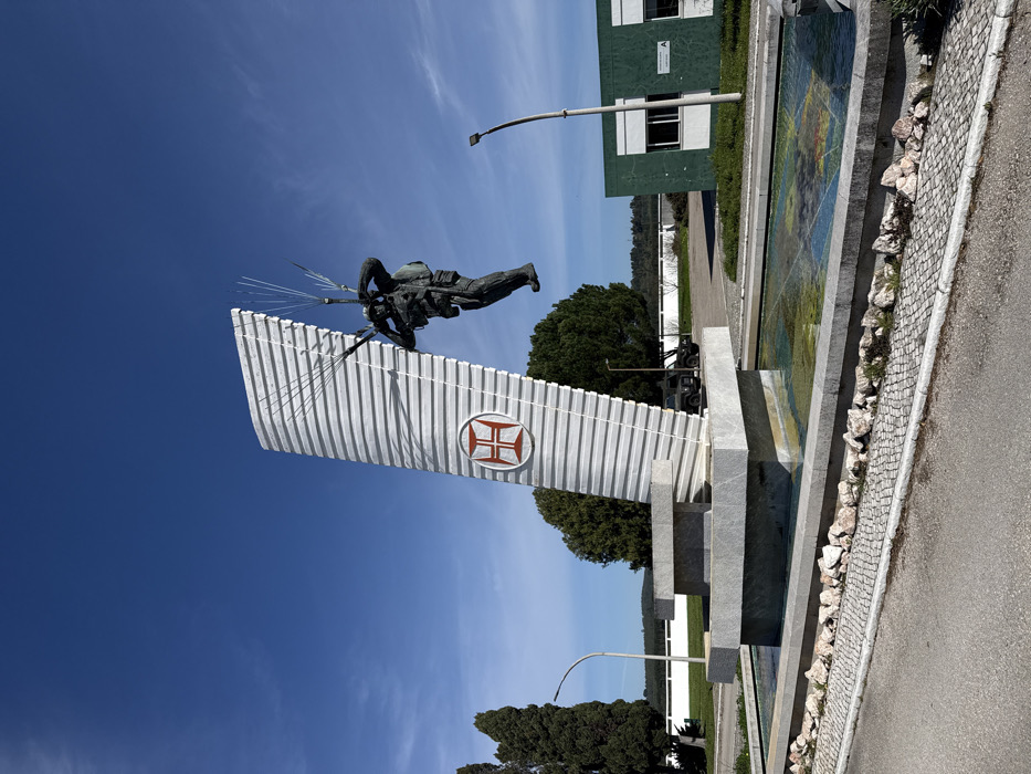 - "The image displays the Monument to the Paratrooper (Monumento ao Paraquedista) situated within a military compound in Praia do Ribatejo, Portugal, under clear daylight" by FM-k1rMm1, licensed under CC BY 4.0