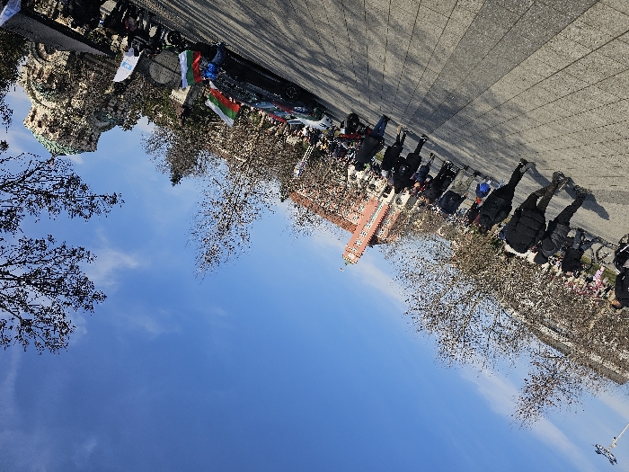 - "The image, tilted approximately 30 degrees to the right, depicts an outdoor public gathering in the city center of Pleven, Bulgaria, under a clear blue sky with minimal cirrus cloud cover" by FM-02Q412, licensed under CC BY 4.0