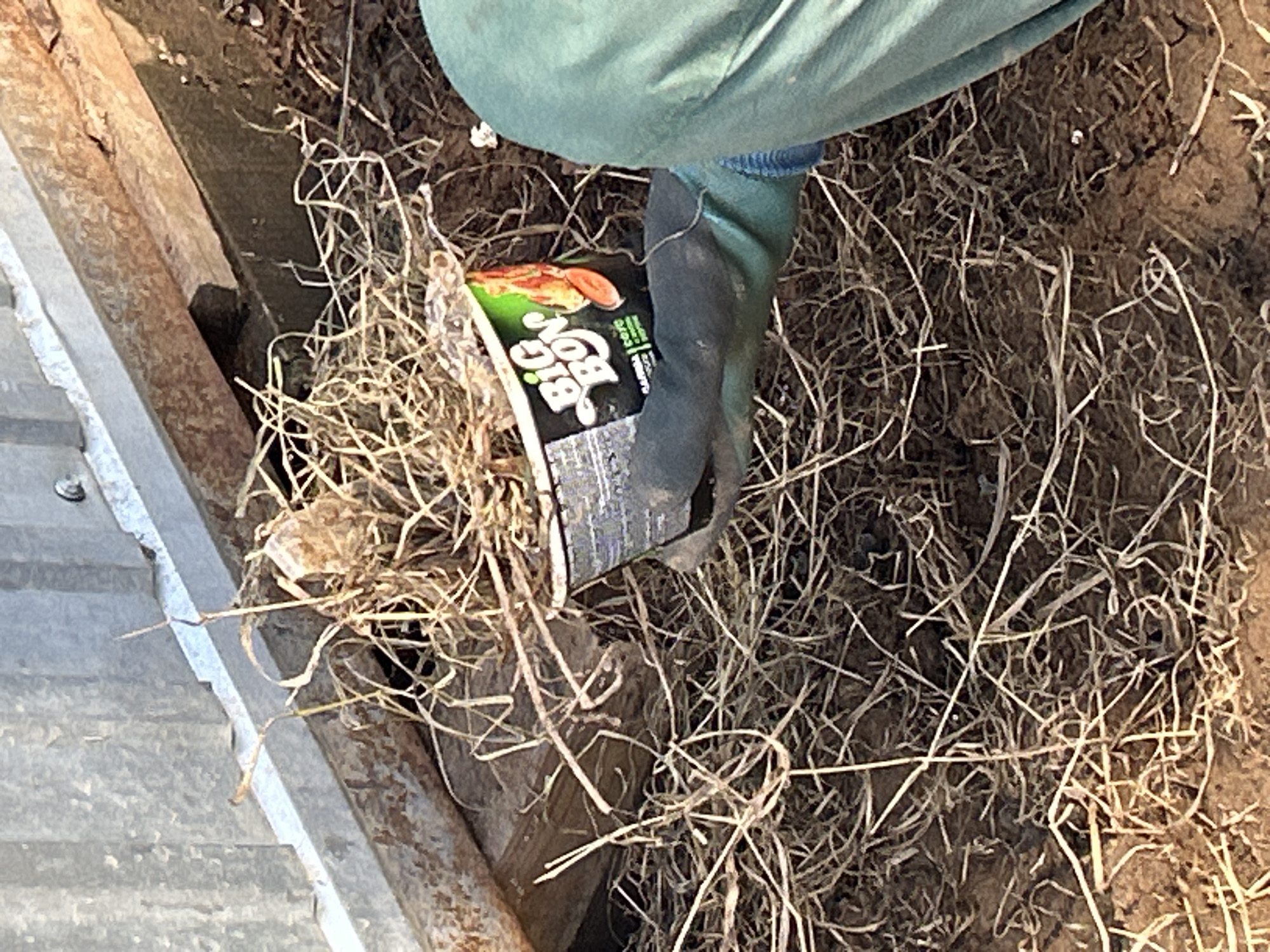 - "The scene depicts a person in green clothing and a dark glove reaching into a space filled with dry grass and debris" by FM-ZgnHF3, licensed under CC BY 4.0
