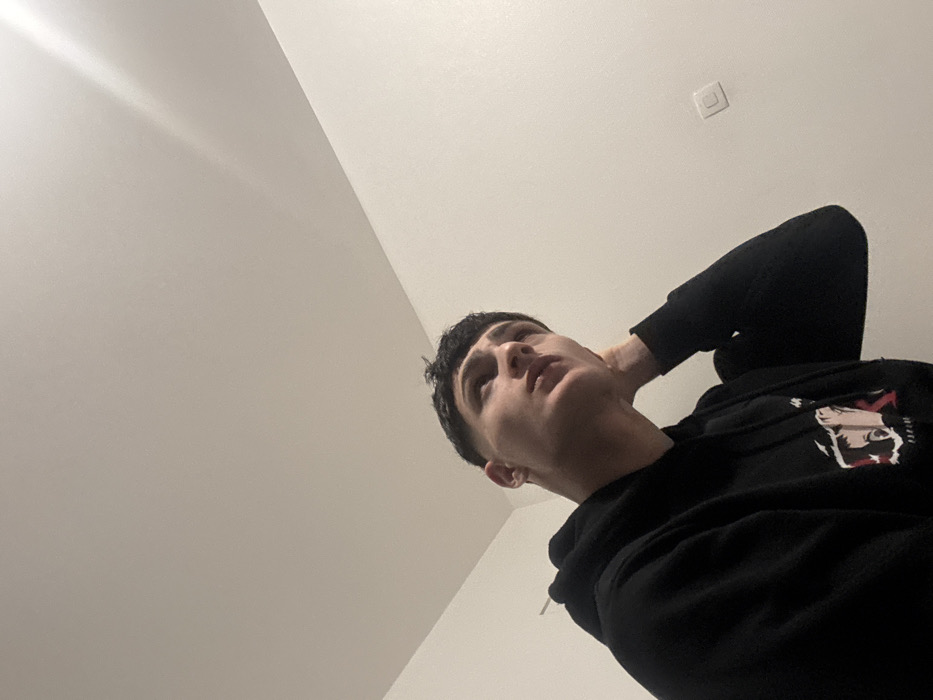 The image depicts a young male subject in an indoor setting located in Ostwald, France