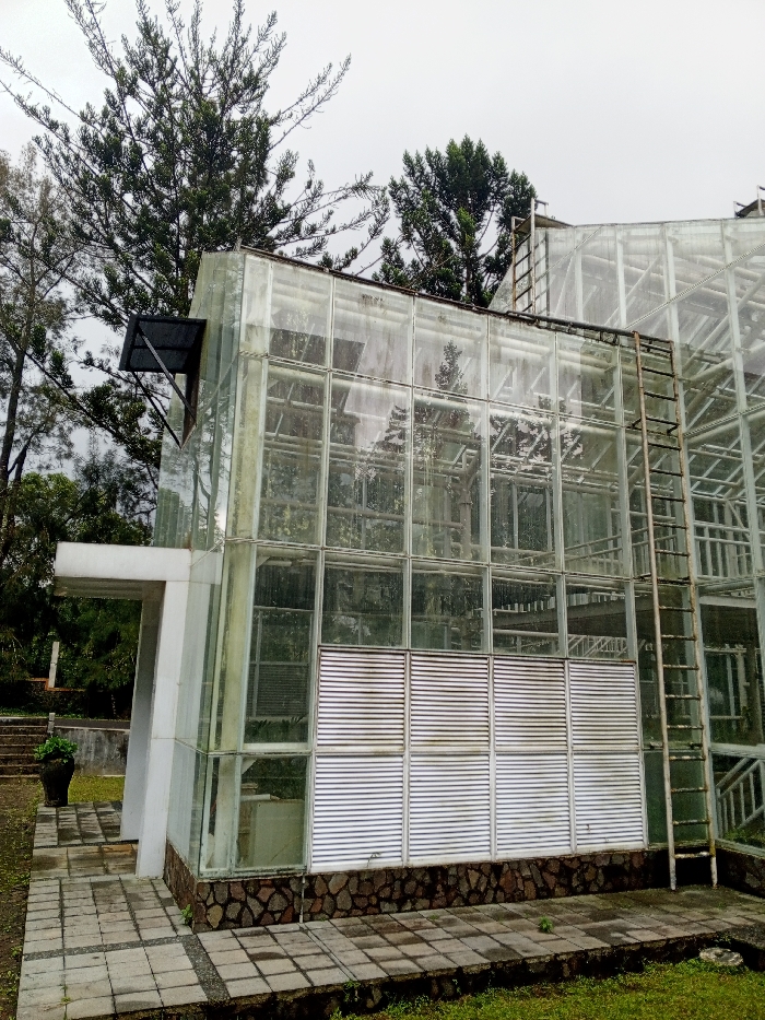 - "A multi-story greenhouse stands amidst greenery, reflecting a cloudy sky" by FM-Xx6tp1, licensed under CC BY 4.0