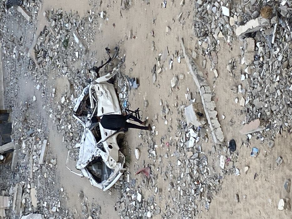 - "A mangled white car rests amidst debris and sandy ground" by FM-U9GOy1, licensed under CC BY 4.0