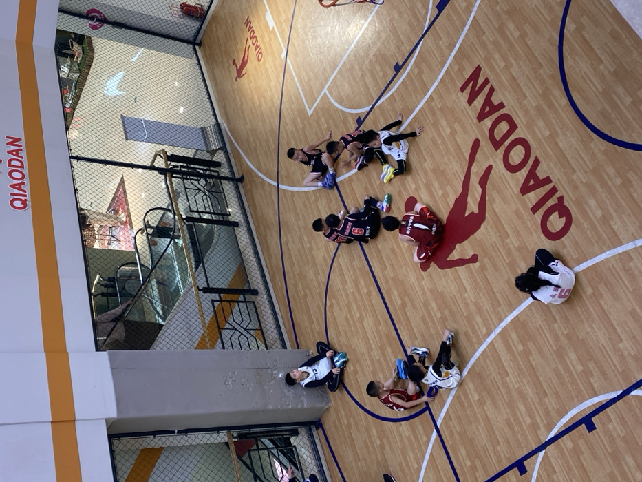 The image depicts an indoor basketball court area, likely within a commercial complex or mall in Linghe, China