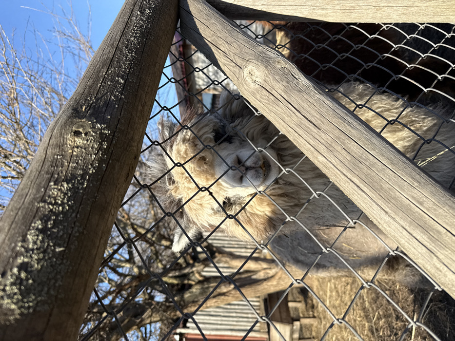 This image depicts an alpaca enclosure in Shakhty, Russia