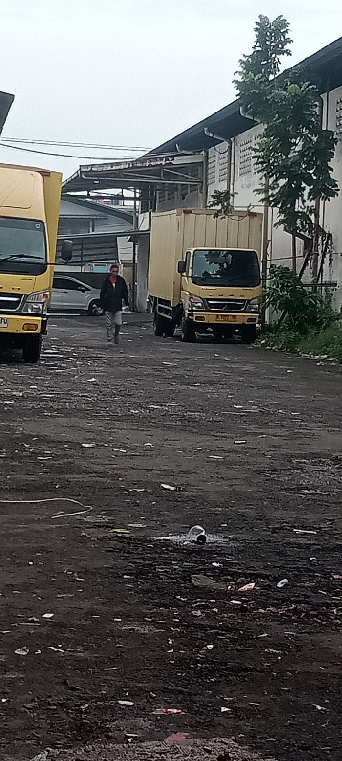 The image depicts an outdoor industrial or commercial area in Sulaeman, Indonesia, under an overcast sky