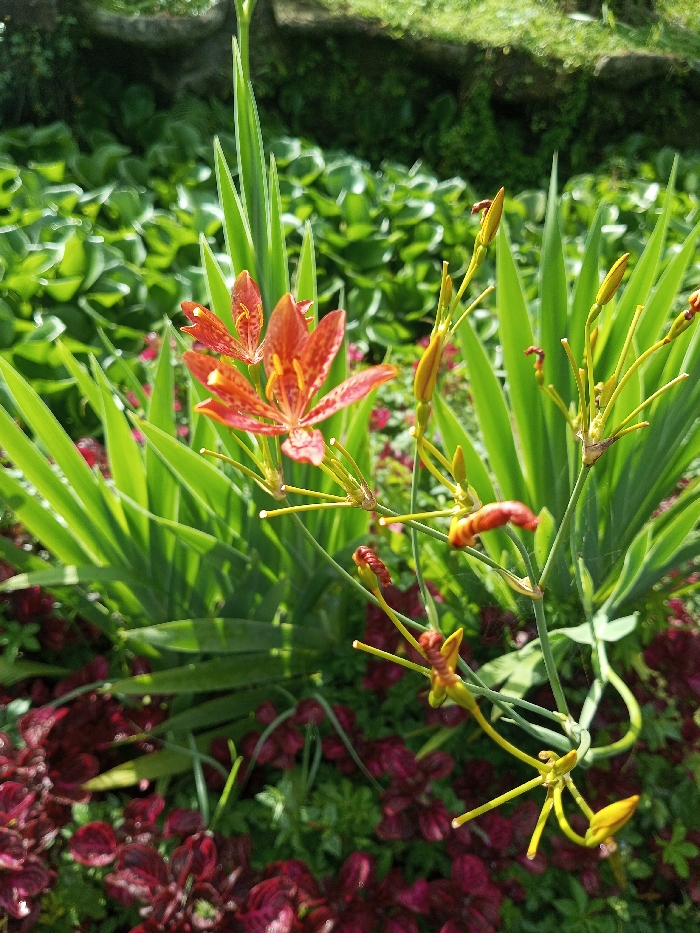 - "A vibrant garden scene features a clump of green, sword-like leaves surrounding a stem of orange and red spotted flowers" by FM-pzsWG2, licensed under CC BY 4.0