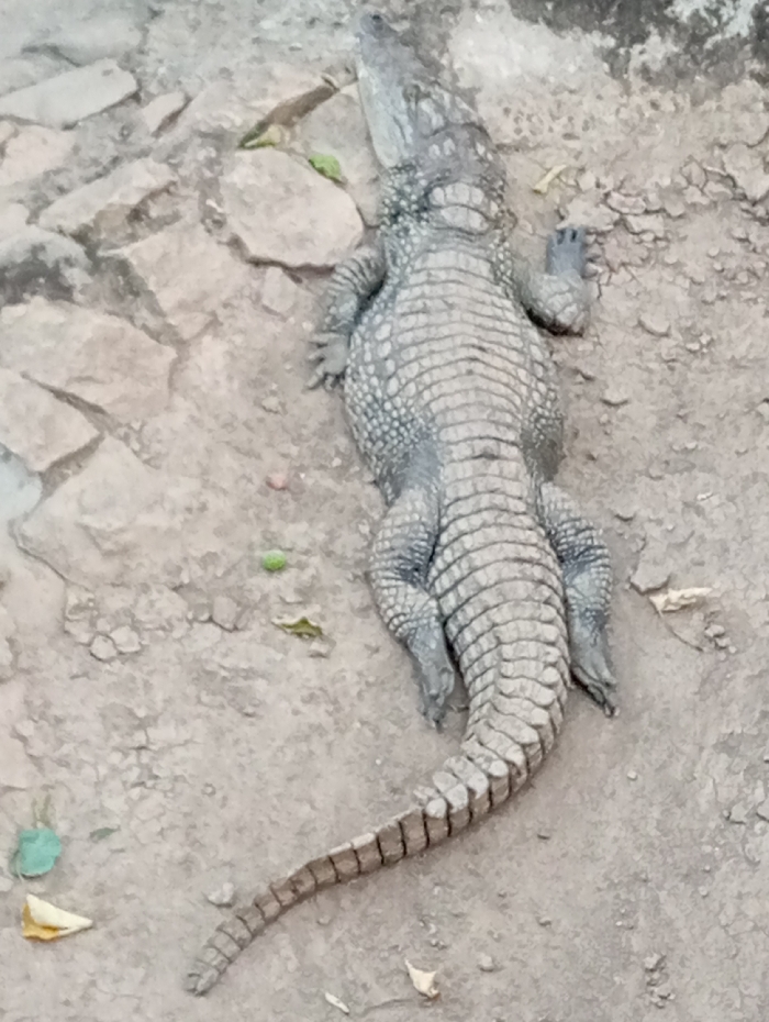 - "An adult Nile crocodile (Crocodylus niloticus) is depicted resting on its ventral side on a dirt and stone surface within an enclosure at the Jos Wildlife Park in Jos, Nigeria" by FM-IkfyG2, licensed under CC BY 4.0