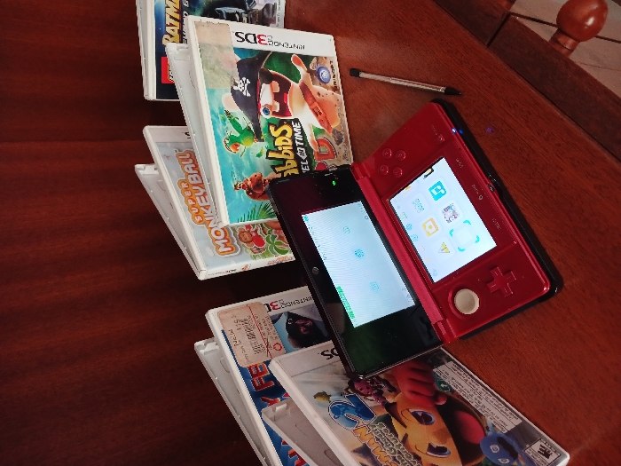 - "The image displays a collection of video game items arranged on a polished, reddish-brown wooden surface, likely a table or desk" by FM-xeHWo1, licensed under CC BY 4.0