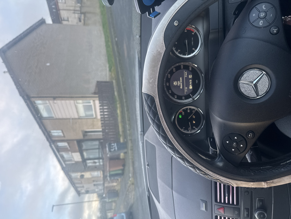 - "The image captures a view from the driver's seat of a Mercedes-Benz vehicle, looking forward through a slightly smudged windshield onto a residential street under an overcast sky" by FM-7P3Aq2, licensed under CC BY 4.0