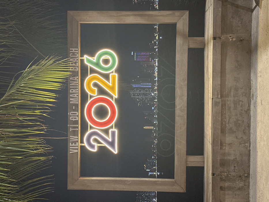 - "The image depicts a nighttime scene at Marina Beach in Nha Trang, Vietnam, centered on a large, rectangular wooden frame" by FM-7mrtA2, licensed under CC BY 4.0