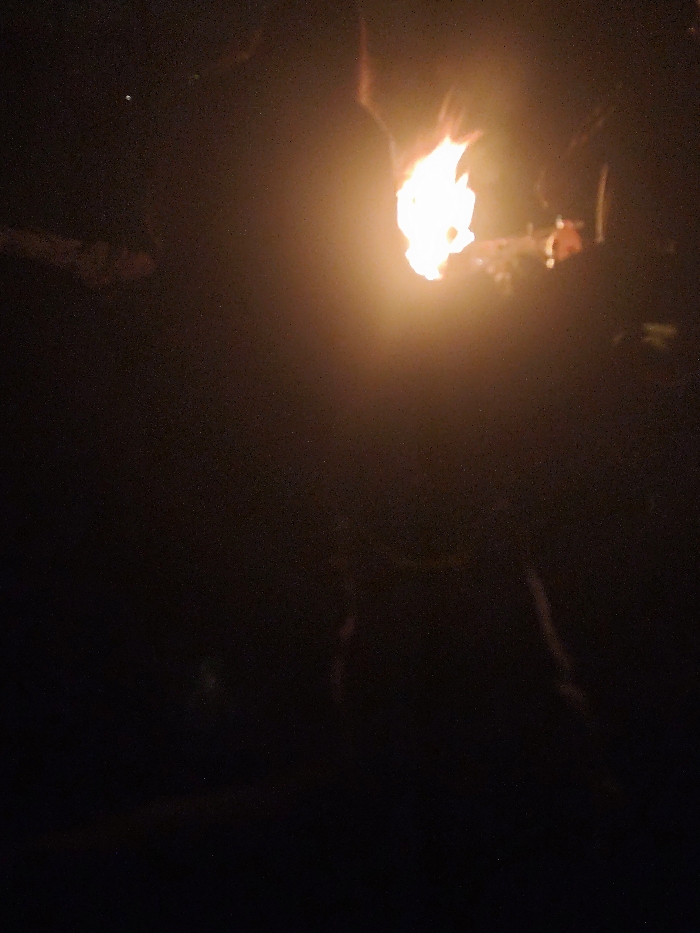 - "The image displays a predominantly dark and grainy scene, illuminated primarily by a bright, irregular orange and yellow flame positioned in the upper right quadrant" by FM-yj6ly1, licensed under CC BY 4.0